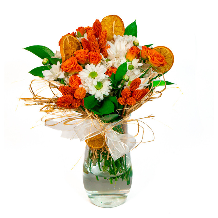 Dekoratif Yeşillikler ve portakal kurusu kullanılarak hazırlanmıştır.